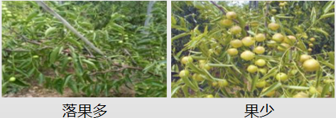 主要原因:內膛郁閉,光照不良、天氣、氣 候不良、磷鋅硼不足,是落果的主要原因。